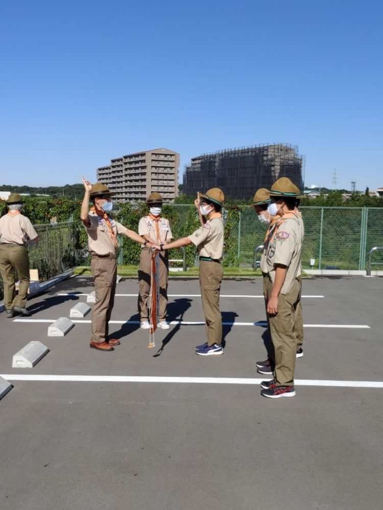 団独自の活動自粛のため8月に行えなかったボーイ隊→ベンチャー隊上進式を行いました。今年は4名。上進への意気込みを叫び、ロープを飛び越えて行きました。その後、ベンチャー隊に入るにあたり再度ちかいをたてました。時がたつのが早い。これで何人のスカウトが上進したのだろう。また一つ年をとりました。(笑)