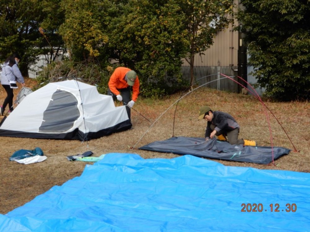 今回12/27-30にかけて感染症対策しながらの連泊キャンプをみよし1団の打越キャンプサイトで実施しました。昨年夏に行った豊田地区キャンプをベースにリーダー会で話し合い各進級章の履修ができるよう計画しました。参加スカウトは延べ12名。その内宿泊4名。