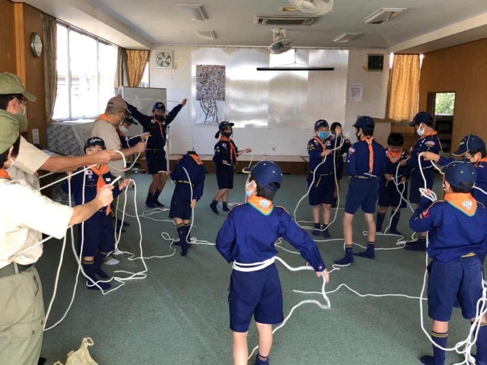 しめ縄作りの後は、ロープ結びの練習、ゲームをしました。スカウト全員で速打ちカブ対決を行い、優勝したスカウトは隊長に挑戦!惜しくも破れてしまいました。隊長の壁は高かったです。