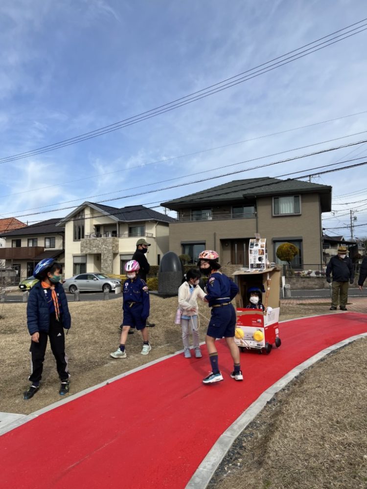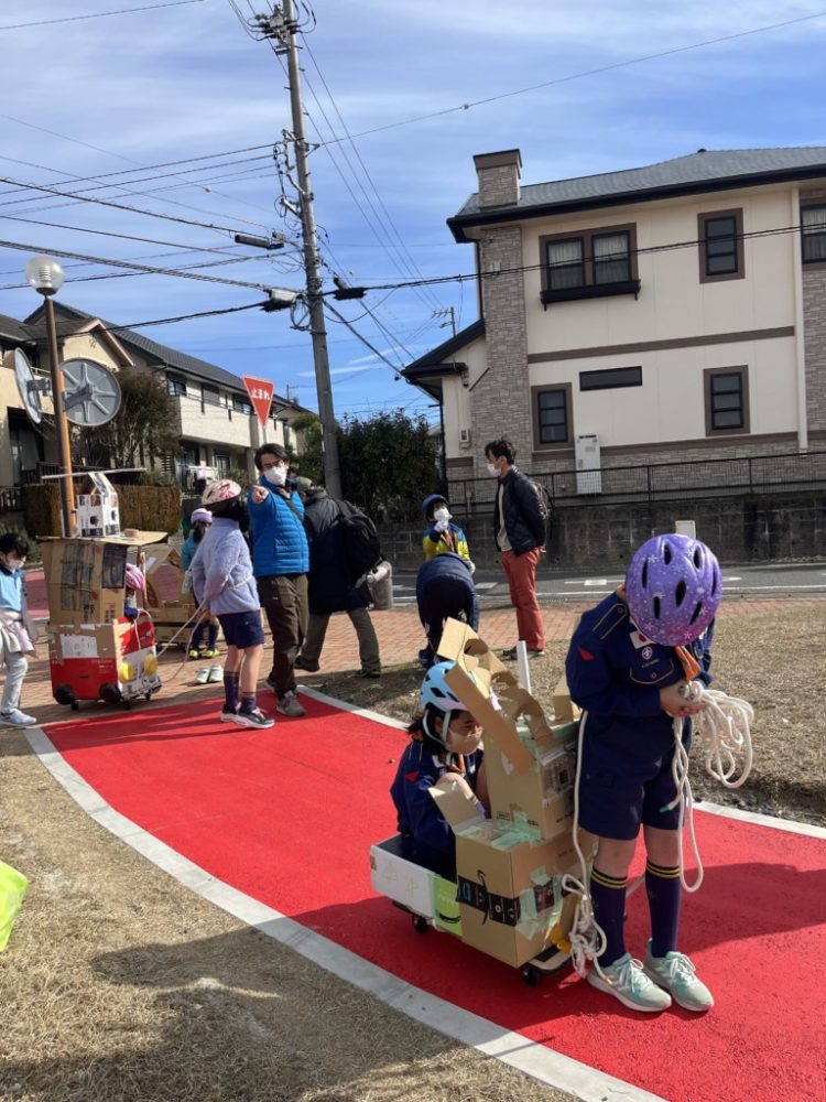 今回の活動ではクラフトカー作りを行い、実際に乗って遊びました。
