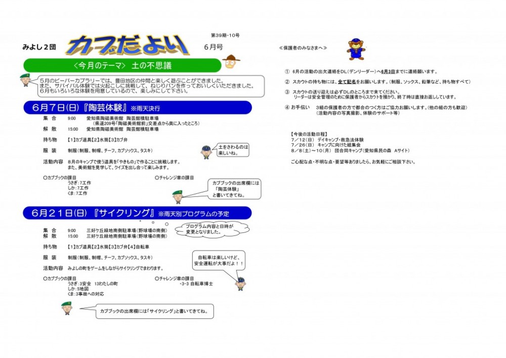 6月3日までに活動の出欠を各デンリーダーまで連絡ください。